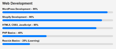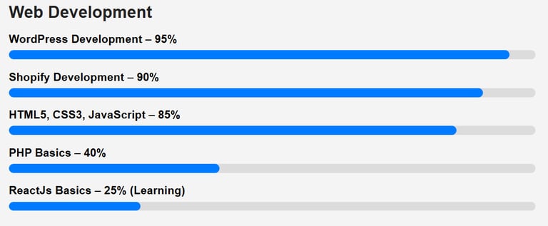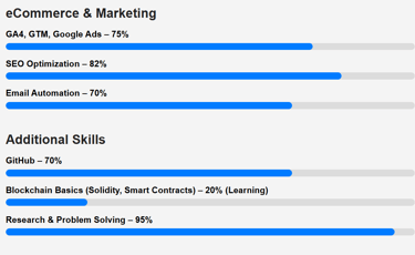 My skillset covers modern web development and digital optimization.